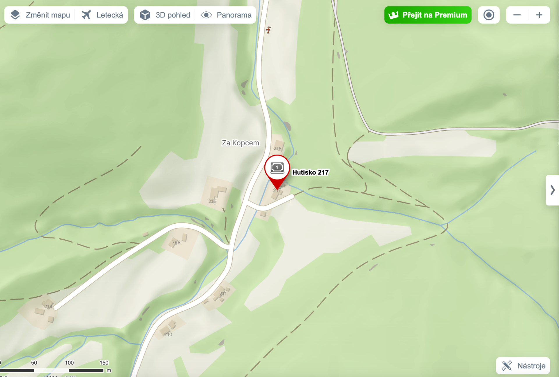 Prosím zadat Hutisko 217 přes Mapy.cz.